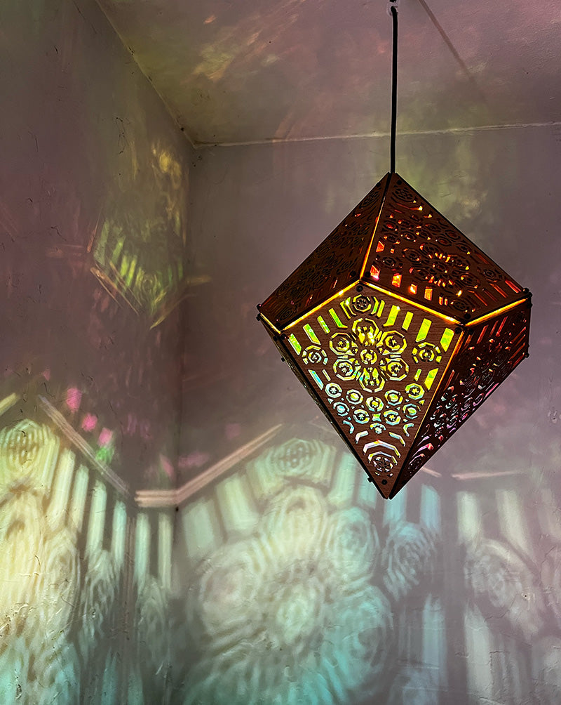 Welcome to the convergence of sacred geometry and artistic expression. Prismatica creates one-of-a-kind, laser-cut art light fixtures that transform any room into a breathtaking sanctuary. Immerse yourself in a wash of kaleidoscopic color and step into a world of wonder with designer artisan lighting pieces.